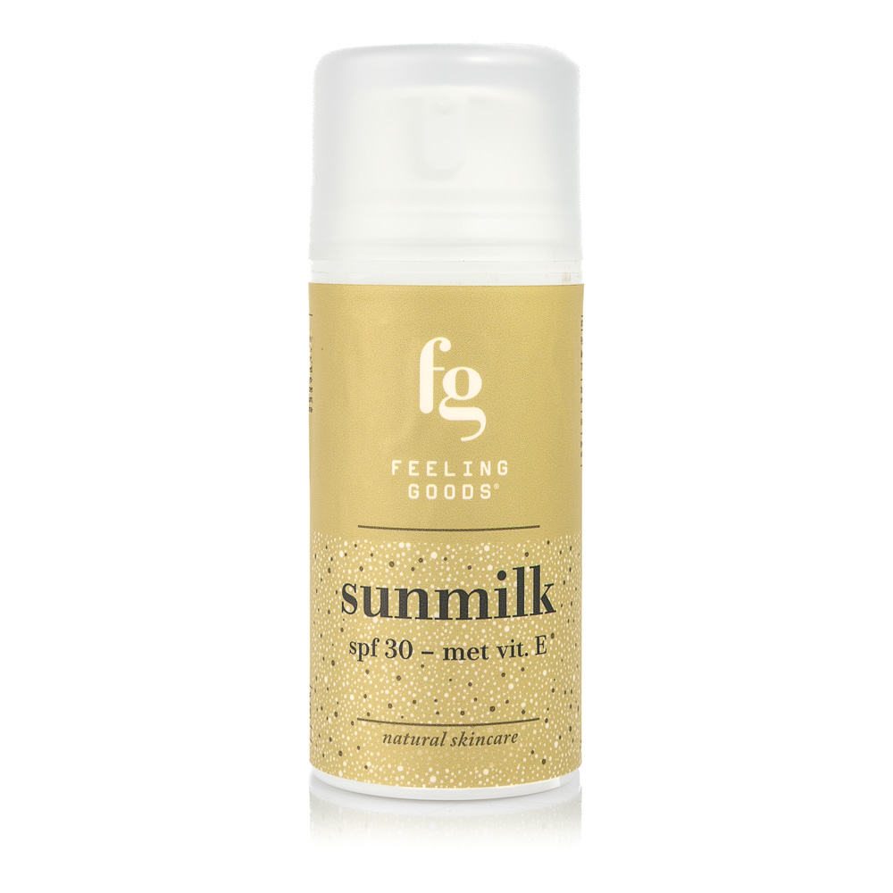 Bescherm je huid elke dag met deze 100% natuurlijke Sunmilk SPF 30 van Feeling Goods. Deze zonmelk met vitamine E en natuurlijke UV-filters beschermt tegen schadelijke UVA- en UVB-stralen, terwijl je huid tegelijkertijd wordt gevoed, gekalmeerd en verzorgd.
